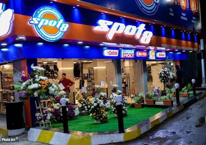 A car maintenance center project with oil change services, a car wash, a mini café, and a market for customer relaxation.